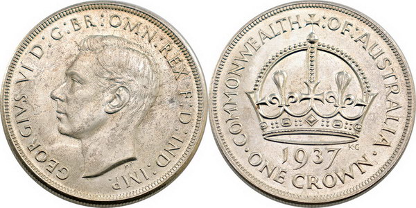 | Description: Crown. 1937. Light tone with bloom, a few marks. aUNC |