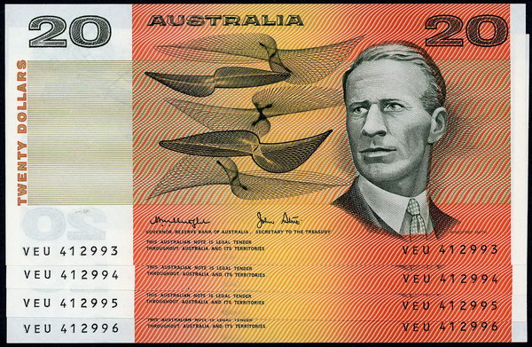 | Description: Twenty Dollar. 1979 Knight-Stone (R 407b). OCRB. Handling. Consecutive run of 4. High catalogue value. UNC |