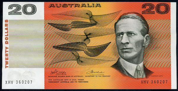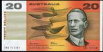 Description: Twenty Dollar. 1974 Phillips-Wheeler (R 405). Australia. Mis-cut approximately 4mm at top and L/H side.   aEF