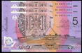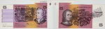 Description: Five Dollar. 1990 Fraser-Higgins (R 212). With paper flap at top right approx 68x21mm, with selvedge and print guide marks. Fold at join as usual along with some vertical folds and handling. Scarce.   VF