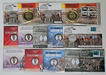 Description: Medallic First Day Covers: 2008 Mega Fauna, 2009 Micro Monsters Praying Mantis, Earth Hour coloured 3-medallion issue, Dolphins coloured, 2010 Koala (2), Mary MacKillop 3-medallion issue (3), Kokoda (2), Fishes of the Reef coloured (2), 2011 F-111 (2), Royal Wedding (2) and Bathurst 50 Years (2). (19 items total).   UNC