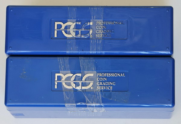 Description: PCGS storage boxes; holds 20 slabbed coins each. Old tape/stickers. (2 items total).   USED