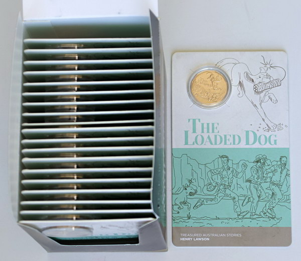 | Description: Fifty Cent. 2022 Henry Lawson: The Loaded Dog al/br Unc 50 Cents on RAM cards. Retail for $15 each. Full display box of 20. UNC |