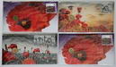 | Description: Two Dollar. 2014 (2), 2015 (2) Remembrance Day with coloured 2 Dollars; green Dove and orange Flanders Field. (4 items total). UNC |