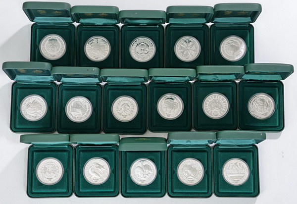 | Description: Five Dollar. 2000 Sydney Olympics set of 16 1oz silver Proof issues, in individual boxes with COAs and slipcases. High retail value. (16 items total). FDC |