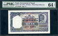 Description: Nepal Government 10 Mohru N/D (1951) (P 6). PMG graded 64 Ch Unc NET (1521819-004). Usual staple holes at left as issued, slight rust around.