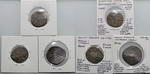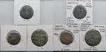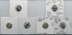 Description: Ancient Byzantine Empire bronze minors: Justin I (491-518AD) bust/large E small A (15mm), (518-527AD) bust/epsilon B (13mm), Justin II (565-578AD) monogram/epsilon (13mm), Maurice Tiberius (582-602AD) bust/large X ANNO (18mm), bust/value (pitted, 19mm), Constantinus (641-688AD) emperor standing/M monogram (20mm) and Manuel I (1143-1180AD) bust/standing (clipped, 17mm). (7 coins total).   G-VG