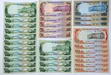 Description: Vietnam South transition issues: 1 Dong (P 40a) run of 8, 2 Dong (P 41a) run of 6 and run of 4, 10 Xu 1966 (P 37a) run of 5 and 20 Xu 1966 (P 38a) run of 10. Light flick. (33 notes total).   aU-UNC