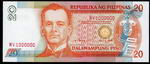 Description: Philippines 20 Piso N/D (1995) (P 182a) with million numbered red serials: WV 1000000. Ramos-Singson.   aEF