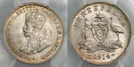 | Description: Threepence. 1914. PCGS graded MS 63 (52718353). Light peripheral tone with some bloom. Rare this grade. Ch.UNC |