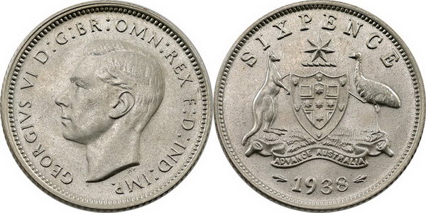 | Description: Sixpence. 1938. Frosty mint bloom. Ch.UNC/GEM |
