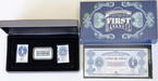 Description: 2013 100th Anniversary of Australias First Banknote 1 oz coloured rectangular silver Proof coin and stamp set. In case of issue.    FDC
