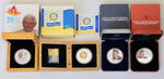 Description: One Dollar. 2003 Prince William 21st, 2005 Prince Harry 21st, 2005 Rotary and 2008 World Yoith Day 1 oz coloured silver Proof issues. In boxes of issue with COAs (some minor marks). (4 items total).   FDC