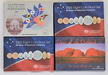 Description: One Dollar. 2000 Millennium 1 oz silver 4-coin set. Includes: Moon, Earth and Sun coloured silver Proof-like and Unc Kookaburra, Lunar Dragon and Kangaroo. In single case of issue with COA (damaged).   UNC-FDC