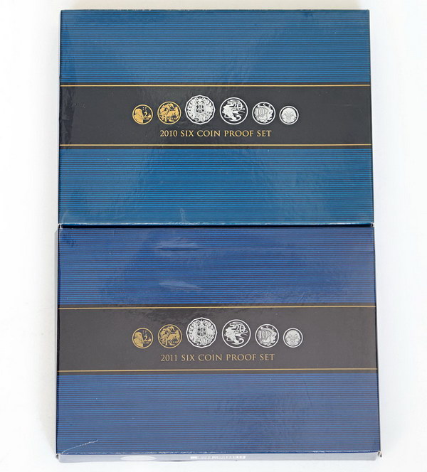 Description: Proof Sets. 2010, 2011 Proof sets. Minor damage, tear to second box. (2 items total).   FDC