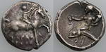Description: Ancient Greece Magna Graecia, Calabria (Tarentum), under Roman Republic rule, silver Nomos N/D (circa 272-235 BC) (6.21g, 19mm). Obv: Nude youth on horseback advancing right, placing wreath on horses head, inscription below, Rev: Taras atop dolphin left, holding kantharos aloft in right hand and resting cornucopia in left arm, torch to right. Weak Obverse strike, Reverse well struck, well centred and toned and a nice example.   VF