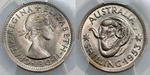 | Description: Sixpence. 1953. Scarce date. PCGS graded MS 65 (57557235). Light tone with frosty bloom. GEM UNC |