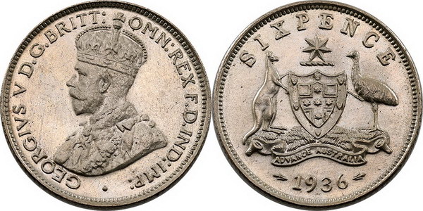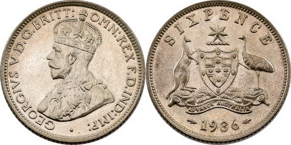 | Description: Sixpence. 1936. Light frosty tone. Ch.UNC |