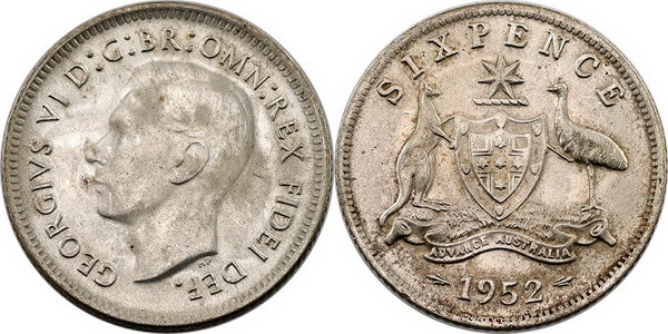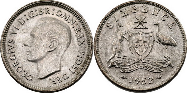 | Description: Sixpence. 1952. Scarce date. Light tone with some bloom. UNC |