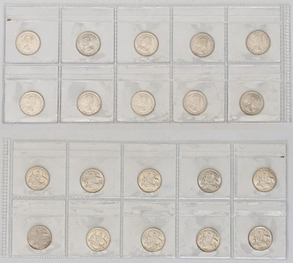| Description: Sixpence. 1954-1963 collection, complete. Some bloom. (10 coins total). UNC-Ch.UNC |