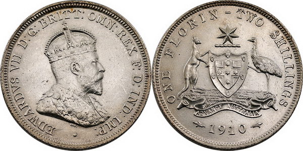 | Description: Florin. 1910. Light hint of tone with bright bloom, well struck with a few marks. With tag as sold previously for $5,750. Ch.UNC/GEM |