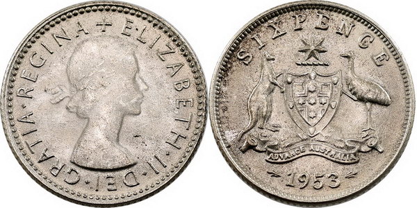 | Description: Sixpence. 1953. Scarce date. Light tone. UNC |