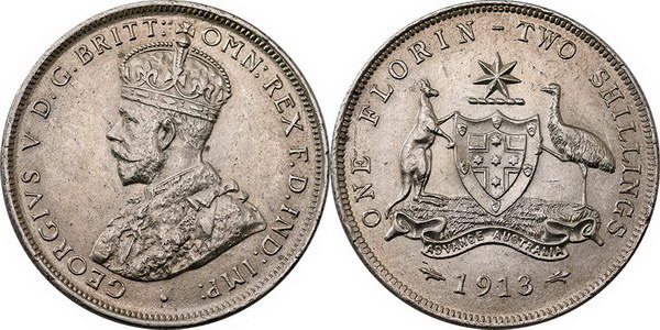 | Description: Florin. 1913. Some light tone. Very scarce this grade. UNC |