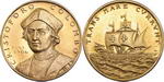 | Description: Italy Christopher Columbus gold Proof commemorative medallion N/D, struck in 22ct gold (17.5g/0.5154oz, 33mm). By Giampaoli, Obv: CRISTOFORO COLOMBO around bust, dates 1451-1506 in left field. Rev: Galleon at sea with peripheral legend TRANS MARE CVRRVNT (travel across the sea). A few minor surface marks. Scarce. aFDC |