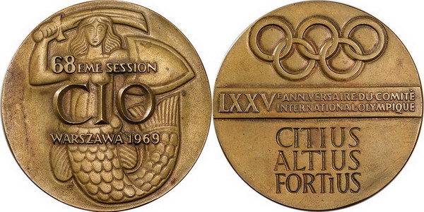 | Description: 1969 Warsaw Olympics Committee bronze medal (60mm). aUNC |