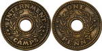 | Description: Penny Internment Camps brass token WW II. Toned. gVF |