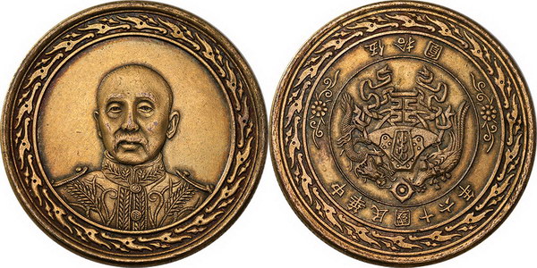| Description: China bronze medallion 1949, with unadopted national emblem on Reverse (36mm). gVF |