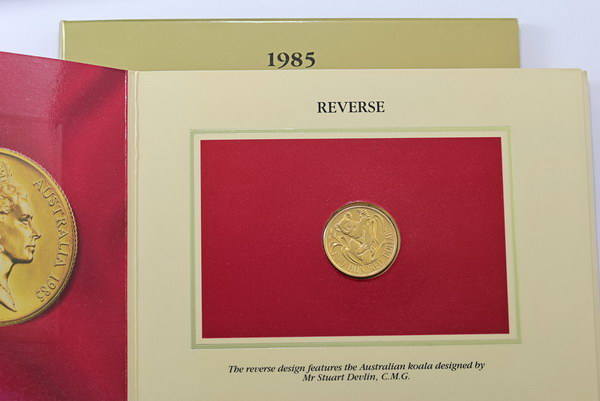 | Description: Two Hundred Dollars. 1985 Koala gold Unc 200 Dollar (10g/22ct). In RAM pack and sleeve of issue. UNC |