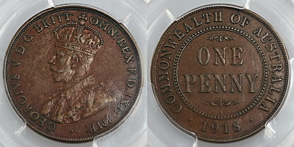 | Description: Penny. 1918I. PCGS graded XF 45 (84052987). Brown, hint of 7/8th pearls. gVF |