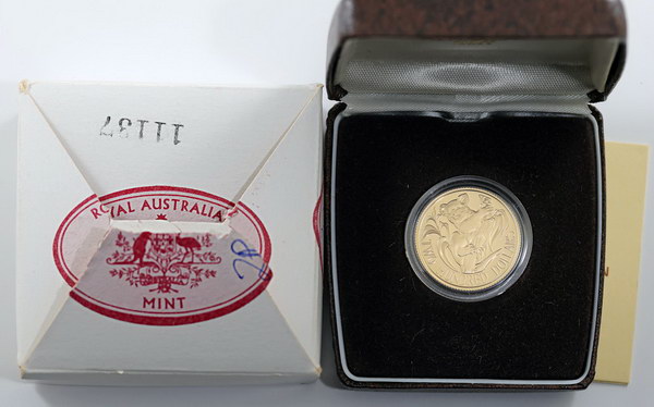 | Description: Two Hundred Dollars. 1980 Koala gold Proof 200 Dollar (10g/22ct). In RAM case of issue with COA (marks to case). FDC |