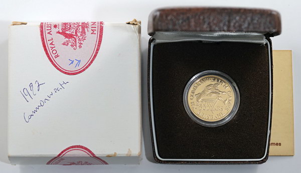 | Description: Two Hundred Dollars. 1982 Commonwealth Games gold Proof 200 Dollar (10g/22ct). In RAM case of issue with COA and outer box (marks to case). FDC |