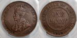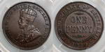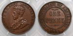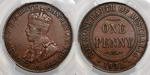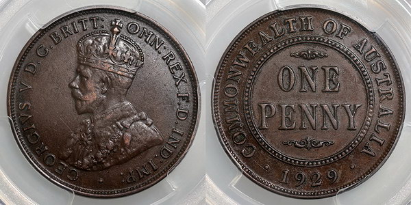 | Description: Penny. 1929. English Obverse. PCGS graded AU 53 (80763057). Dark brown. aEF/EF |