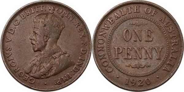 | Description: Penny. 1922 English Obverse. Brown. EF |
