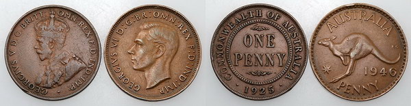 | Description: Penny. 1925, 1946. Key dates. (2 coins total). aF/FINE |