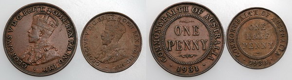 | Description: Penny. 1931 Indian Obverse. Also Halfpenny 1933/2 overdate. (2 coins total). FINE-aVF |