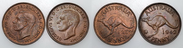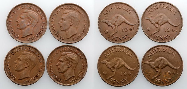 | Description: Penny. 1941 K.G. (4 coins total). gF-aVF |