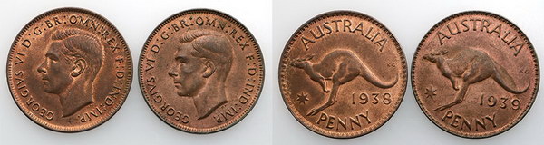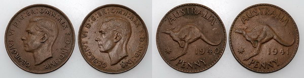 | Description: Penny. 1940 K.G, 1941 K.G. (2 coins total). F-aVF |