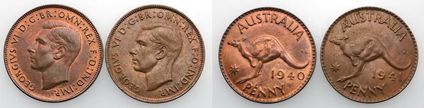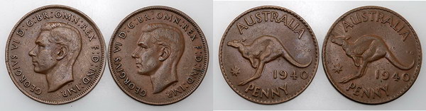 | Description: Penny. 1940 K.G. (2 coins total). gF-aVF |
