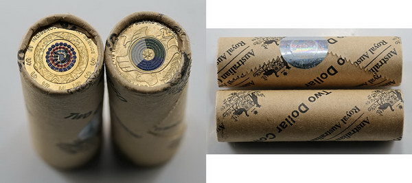 2020 End of WW II, 2021C Defending Country coloured Unc RAM Mint rolls. In capsules. (2 rolls total).
