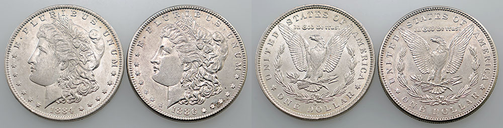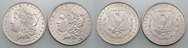 United States silver Morgan Dollar 1884 O, 1886. (2 coins total).