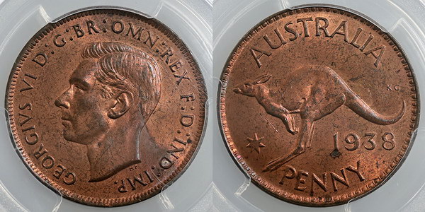 Penny. 1938. Red/brown with hints of blue...