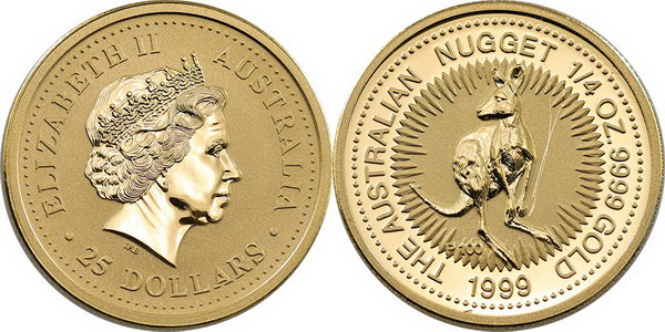 1999P Australian Nugget Kangaroo 1/4 oz gold $25.