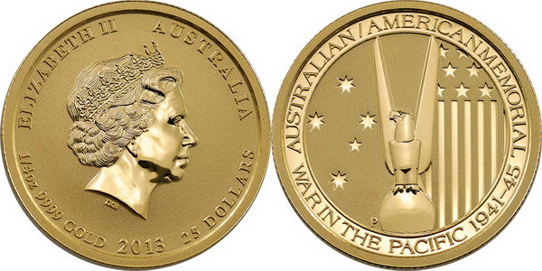 | Description: 2013P War in the Pacific: Australian/American Memorial 1/4 oz gold $25. UNC |