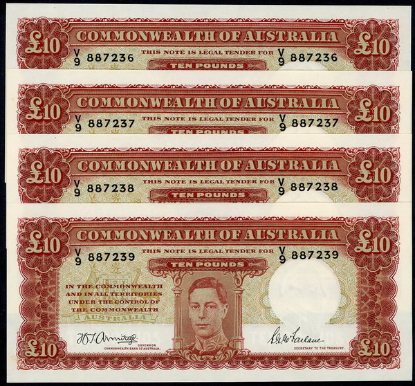 | Lot: 1002 Category: Australian Superior Pre Decimal Banknotes > Ten Pound |