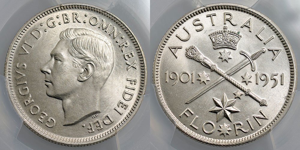 Florin. 1951 Jubilee. PCGS graded MS 64...