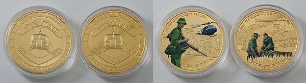 Vietnam coloured gold-plated Proof medallions; Mateship and Call of Duty. (2 items total).